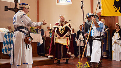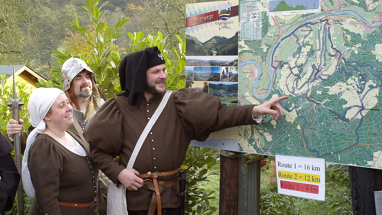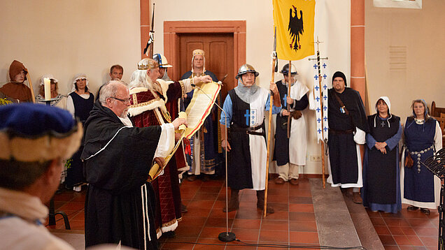 Ortsbürgermeister Norbert Sproß würdigte im Rahmen des feierlichen Festaktes den Eigentümer von Schloss Veldenz, Gilbert Haufs-Brusberg. "Sein Wirken und tatkräftiges Engagement" lasse die Grafschaft immer wieder neu aufleben und ziehe alle in Bann. Der Schlossherr wirkte auch dieses Mal mit. Er stellte Graf Heinrich von Veldenz und Geroldseck dar, der 1270 die Erbtochter des Grafen von Veldenz geheiratet hatte.