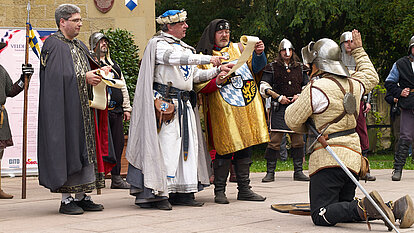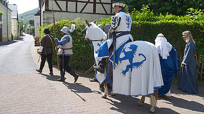 Im Rahmen ihres 58. Wein- und Heimatfestes hat die Ortsgemeinde Veldenz an die ihr vor 725 Jahre verliehenen Stadtrechte erinnert. Den Festakt stellten rund zwei Dutzend Laiendarsteller in historischen Kostümen nach.